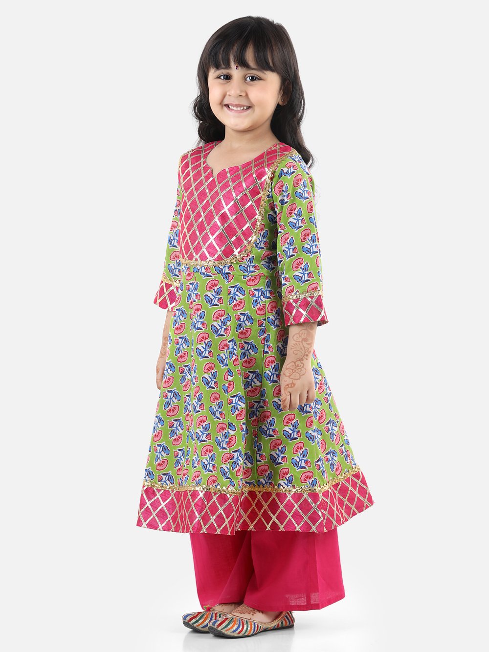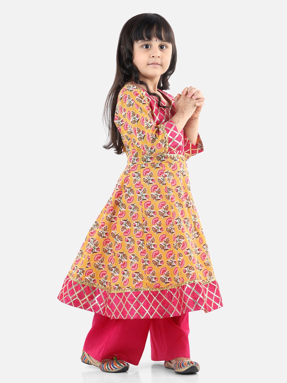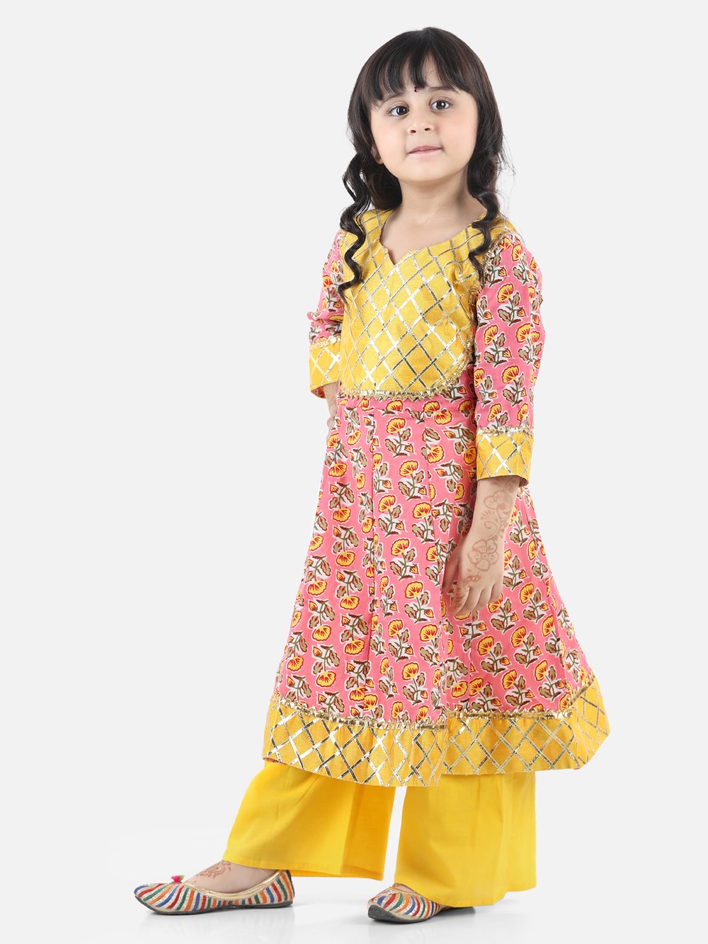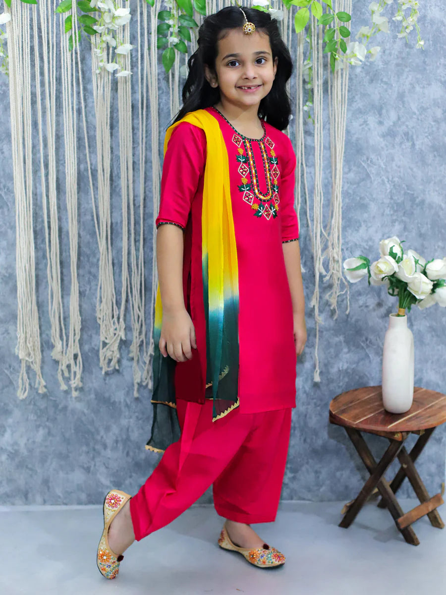 (BownBee Embroidered Kurti with Salwar and Dupatta for Girls- Pink