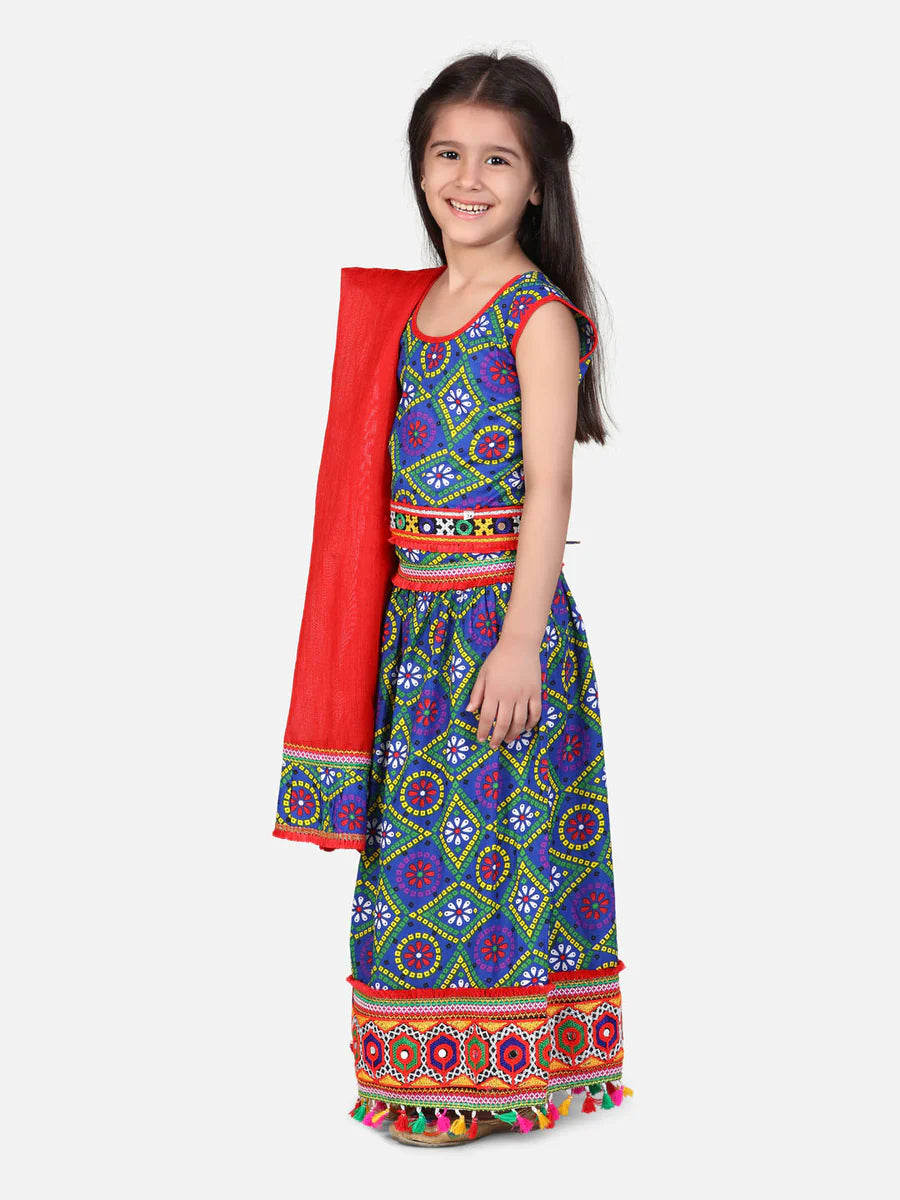 Bandhani Chaniya Choli With Frill Dupatta - Blue