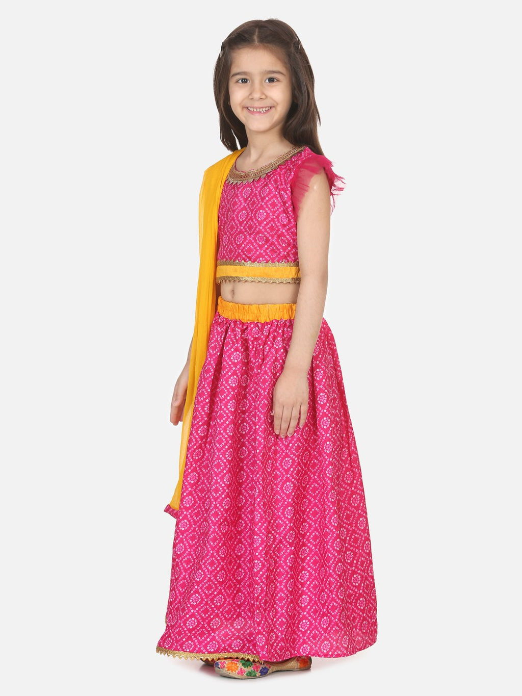 Bandhani Net pleated Sleeves Lehenga- Pink