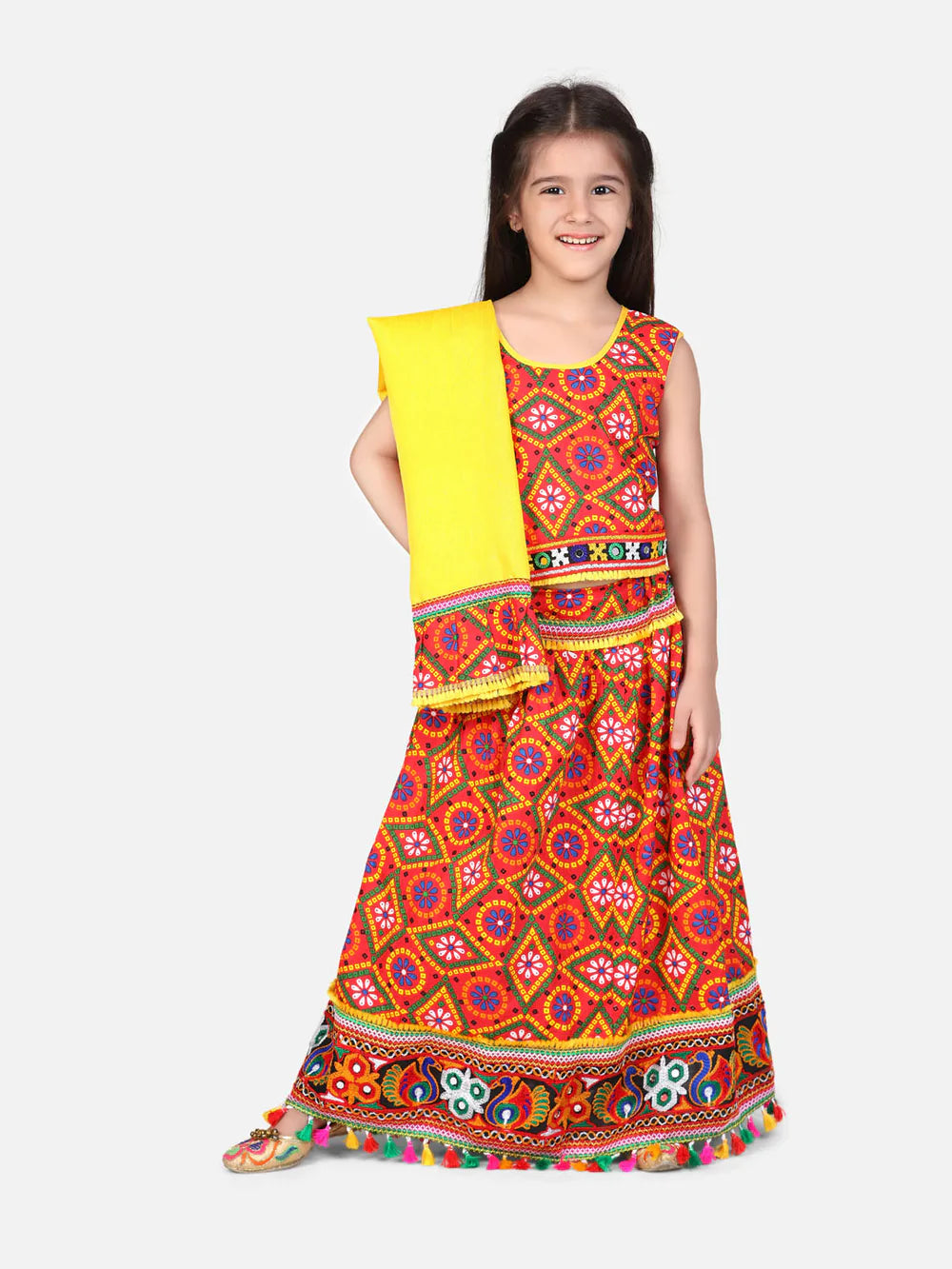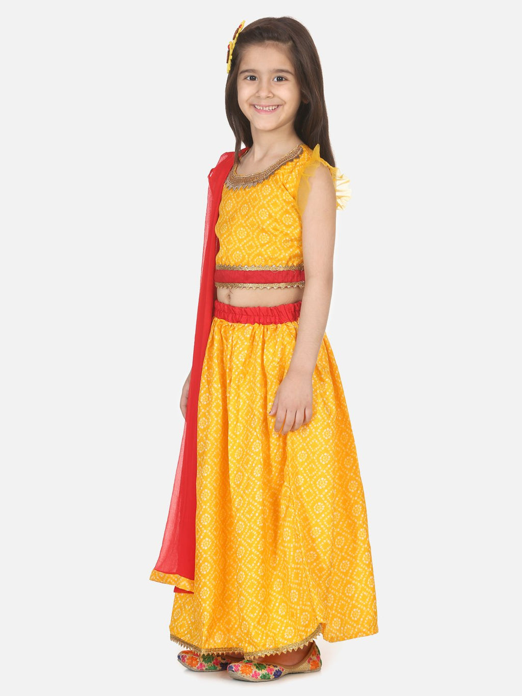Bandhani Chaniya Choli With Frill Dupatta- Red
