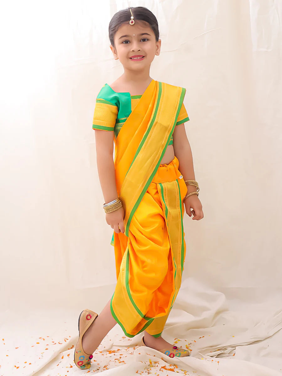 BownBee Ethnic Woven Design Ready To Wear Nauvari Saree For Girls - Yellow