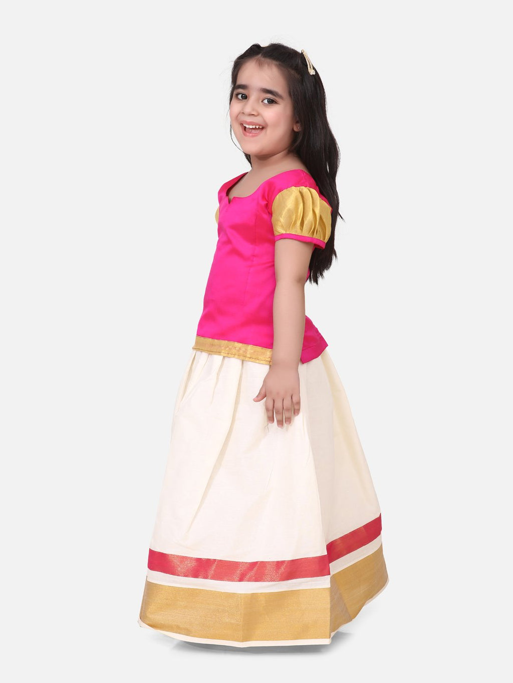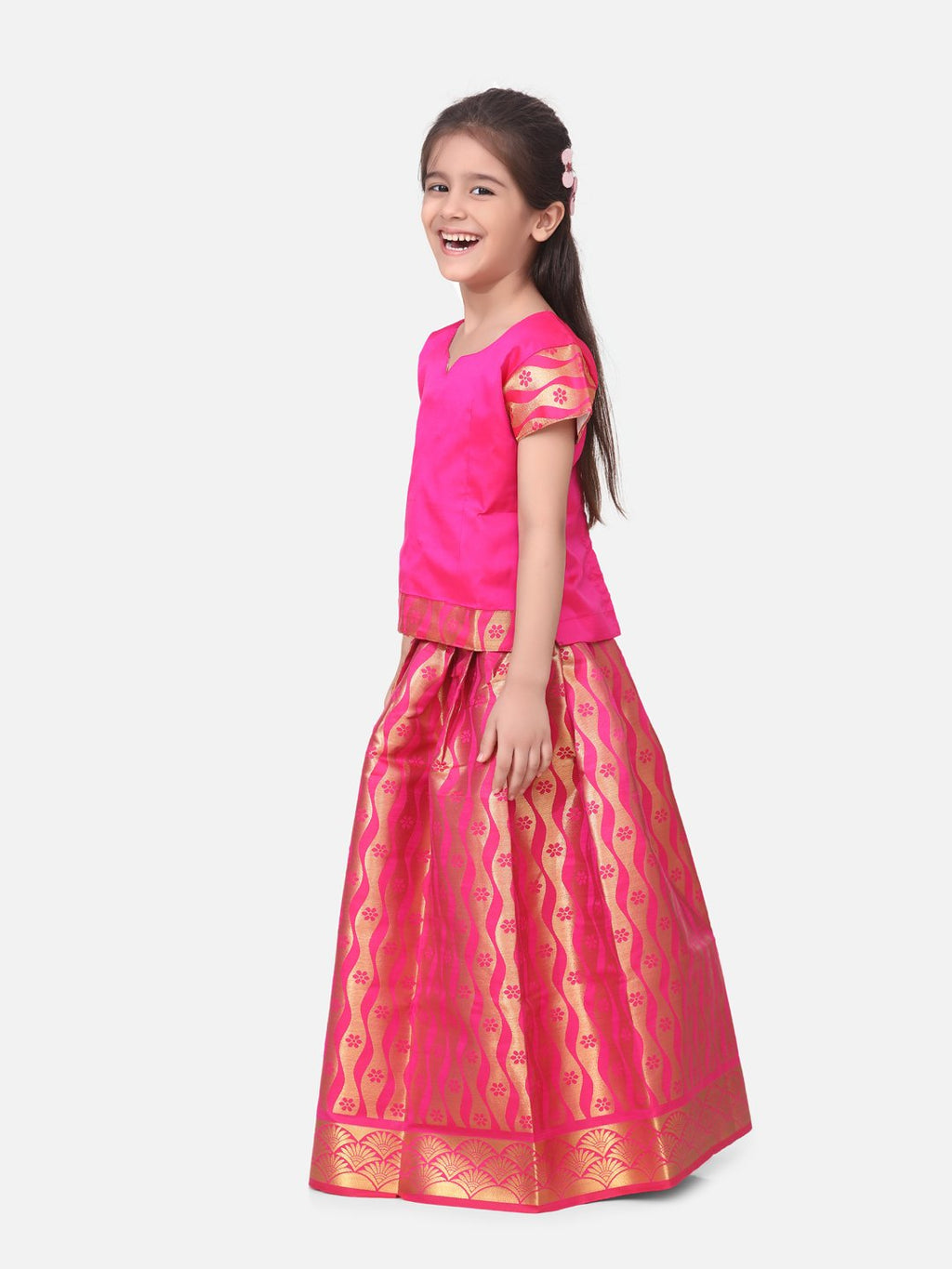 BownBee Girls Half Sleeve South Indian Pavda Pattu Lehenga