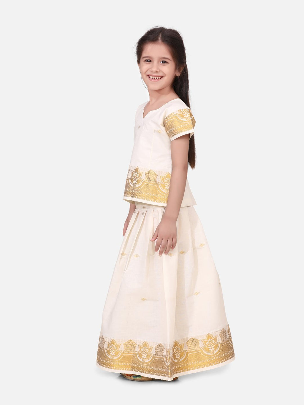 BownBee GirlsHalf Sleeve South Indian Pavda Pattu Lehenga- White