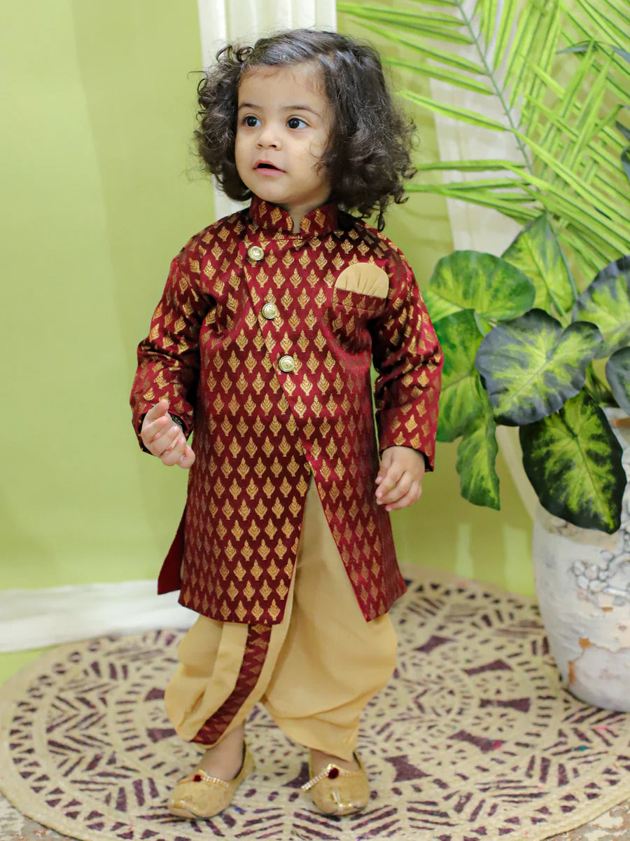 BownBee Jacquard Full Sleeve Sherwani with Dhoti for Boys- Maroon