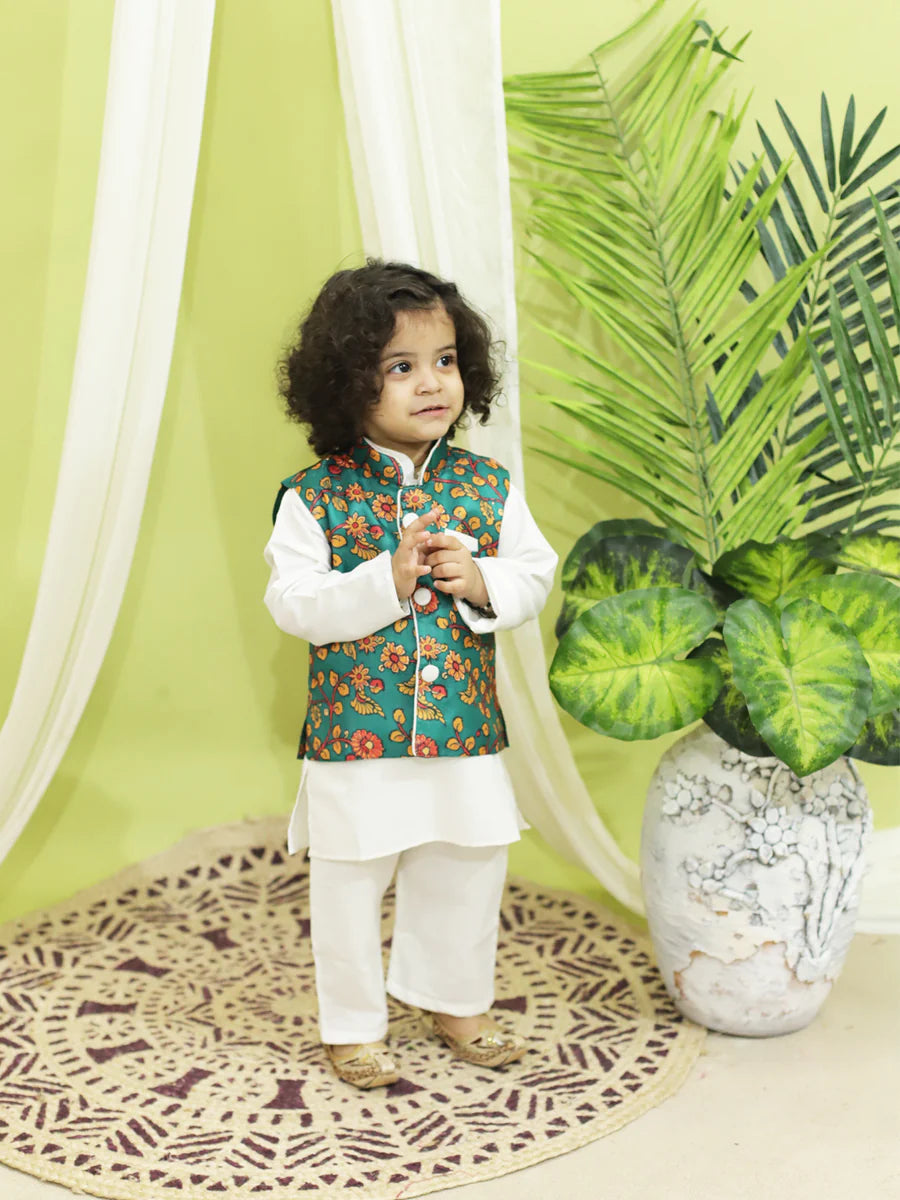BownBee Kalamkari Print Jacket with Kurta Pajama for Boys- Green