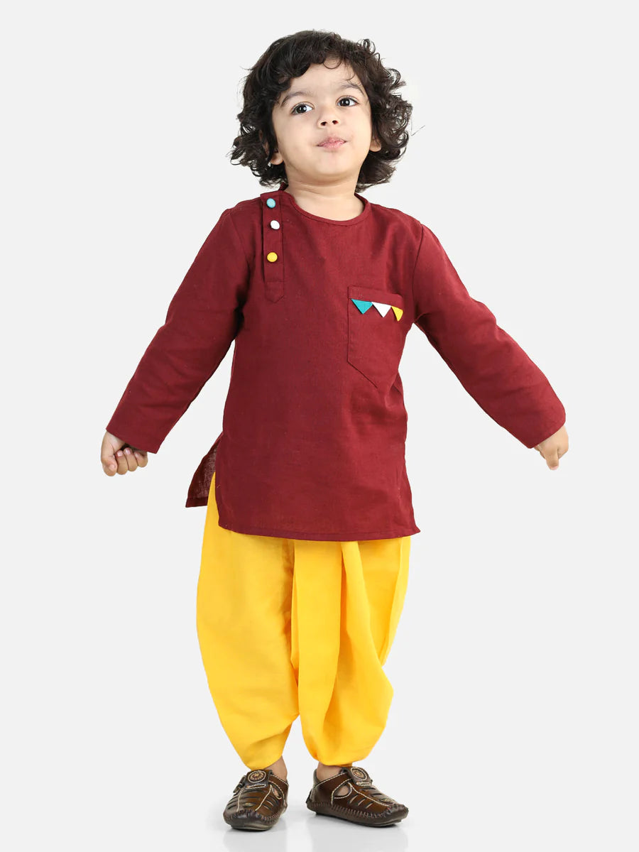 BownBee Full Sleeve Pure Cotton Dhoti Kurta For Boy - Maroon