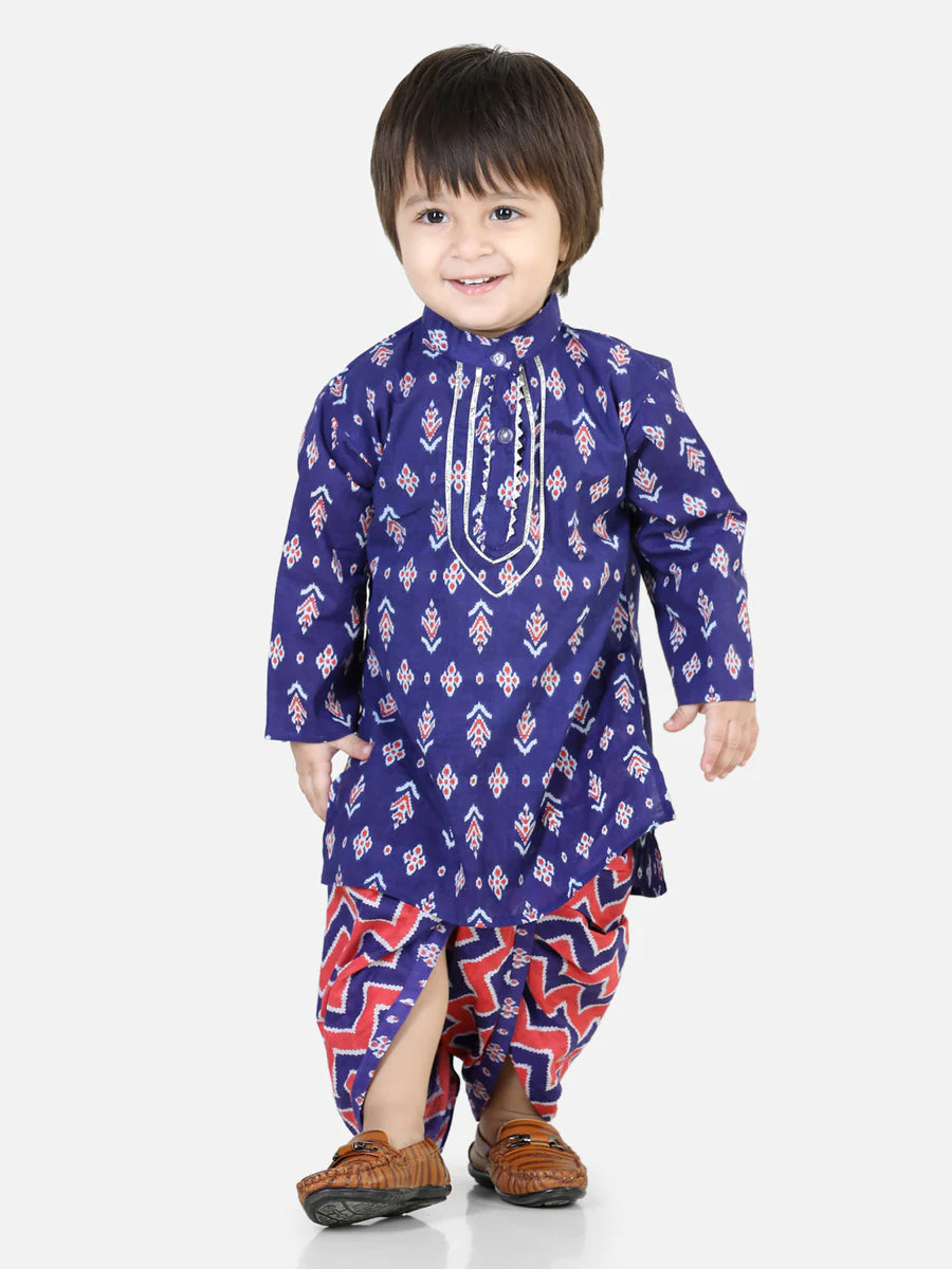 BownBee Full Sleeve Pure Cotton Dhoti Kurta for Boys- Indigo
