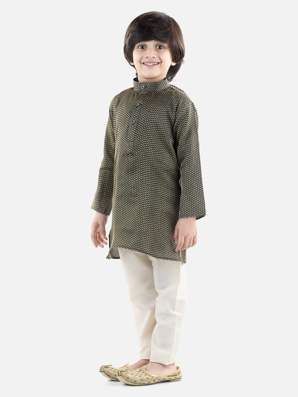 BownBee Full Sleeve Jacquard Kurta Pajama- Black