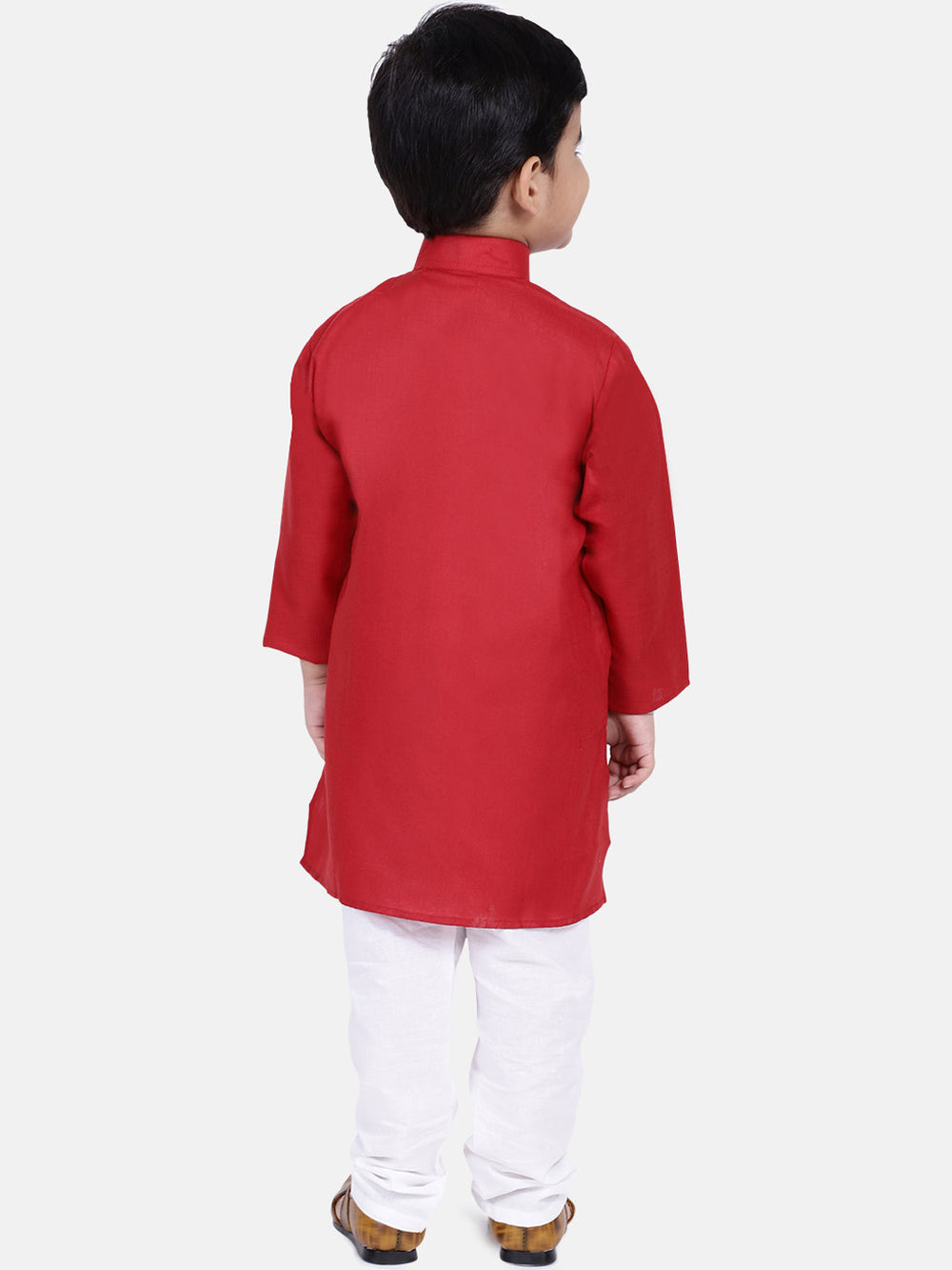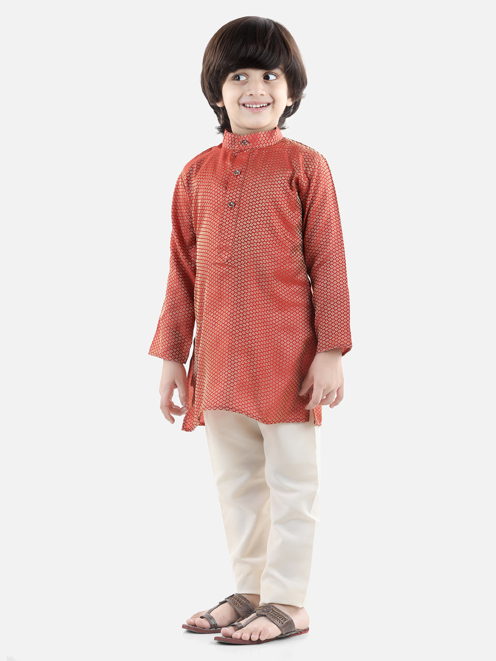 BownBee Full Sleeve Jacquard Kurta Pajama- Red
