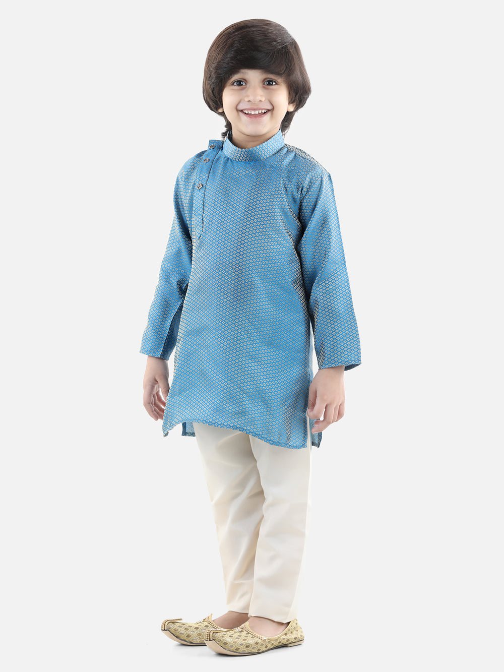 BownBee Full Sleeve Jacquard Kurta Pajama- Sky Blue