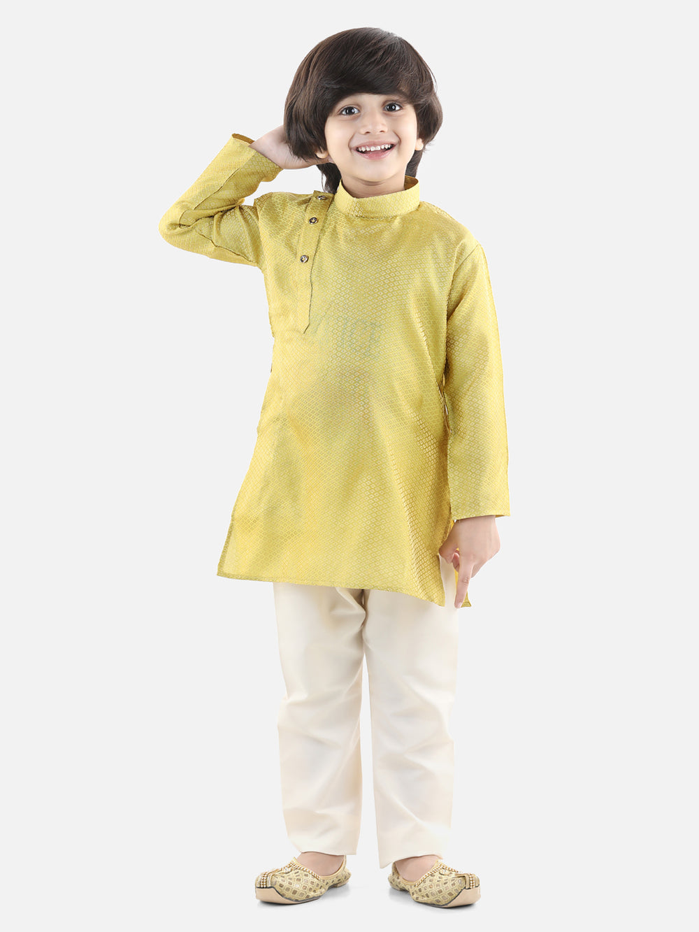BownBee Full Sleeve Jacquard Kurta Pajama- Yellow