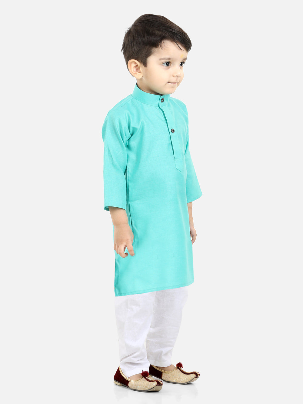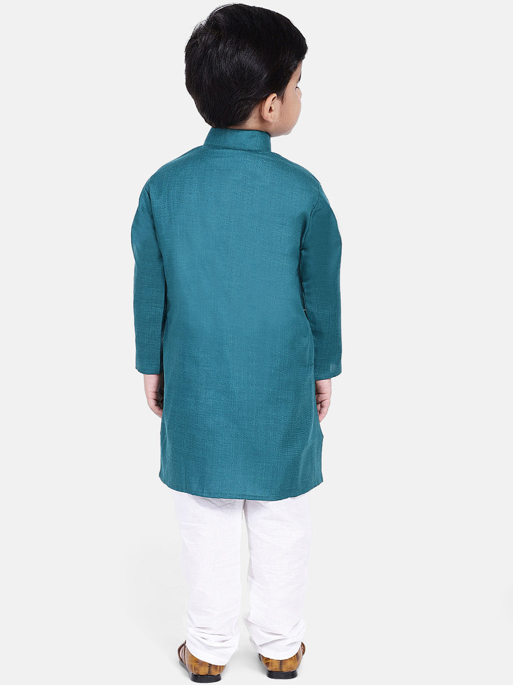 Attached Jacquard Jacket Kurta Pajama for Boys- Green