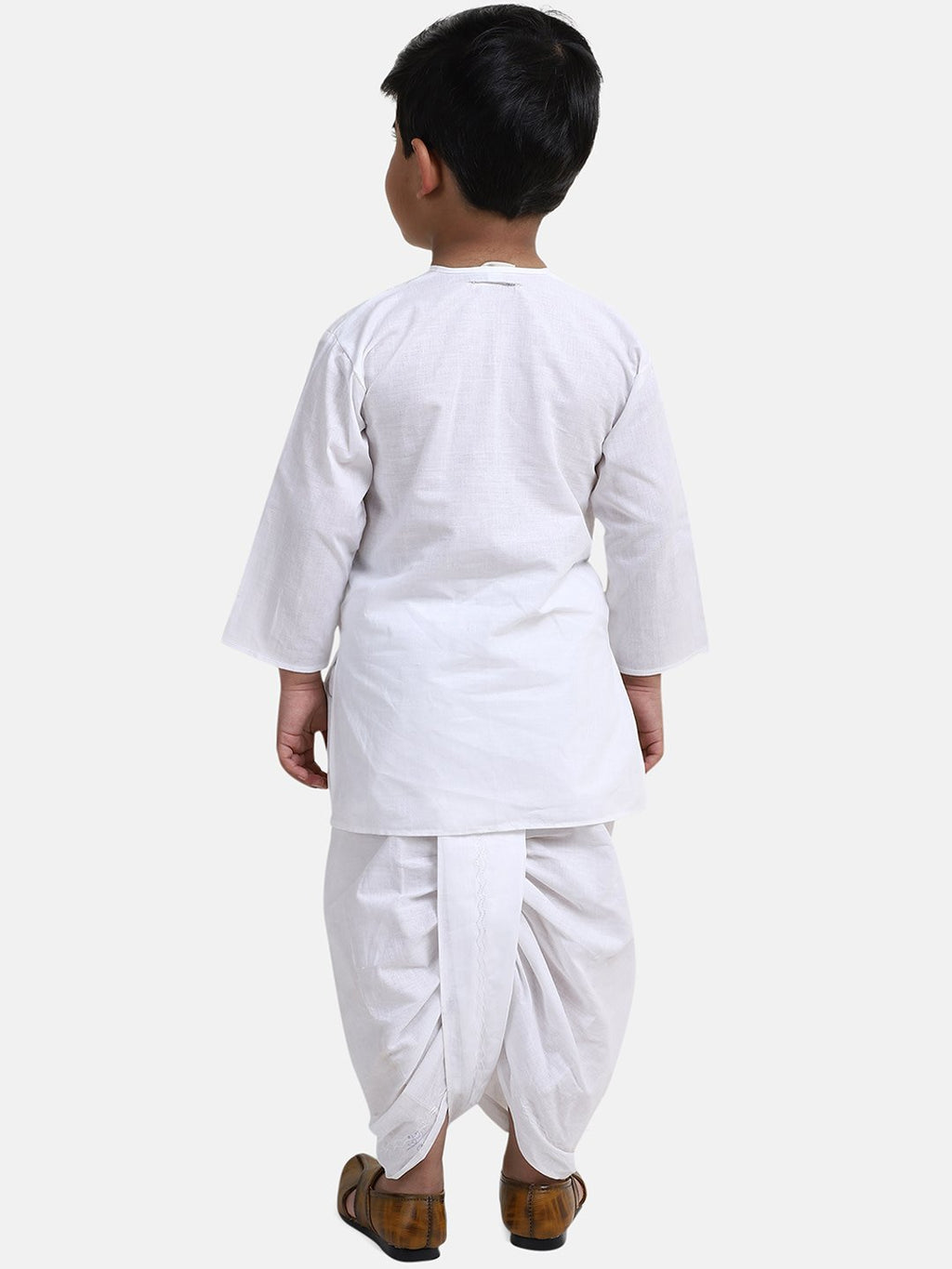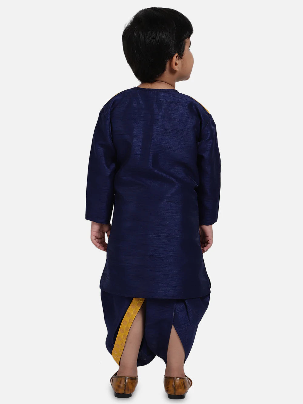 Attached Jacket Jacquard Dhoti Kurta For Baby Boys- Navy Blue