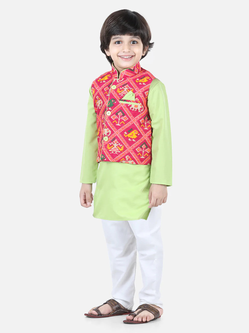 Patan Patola Jacket Kurta Pajama 3 piece set- Green