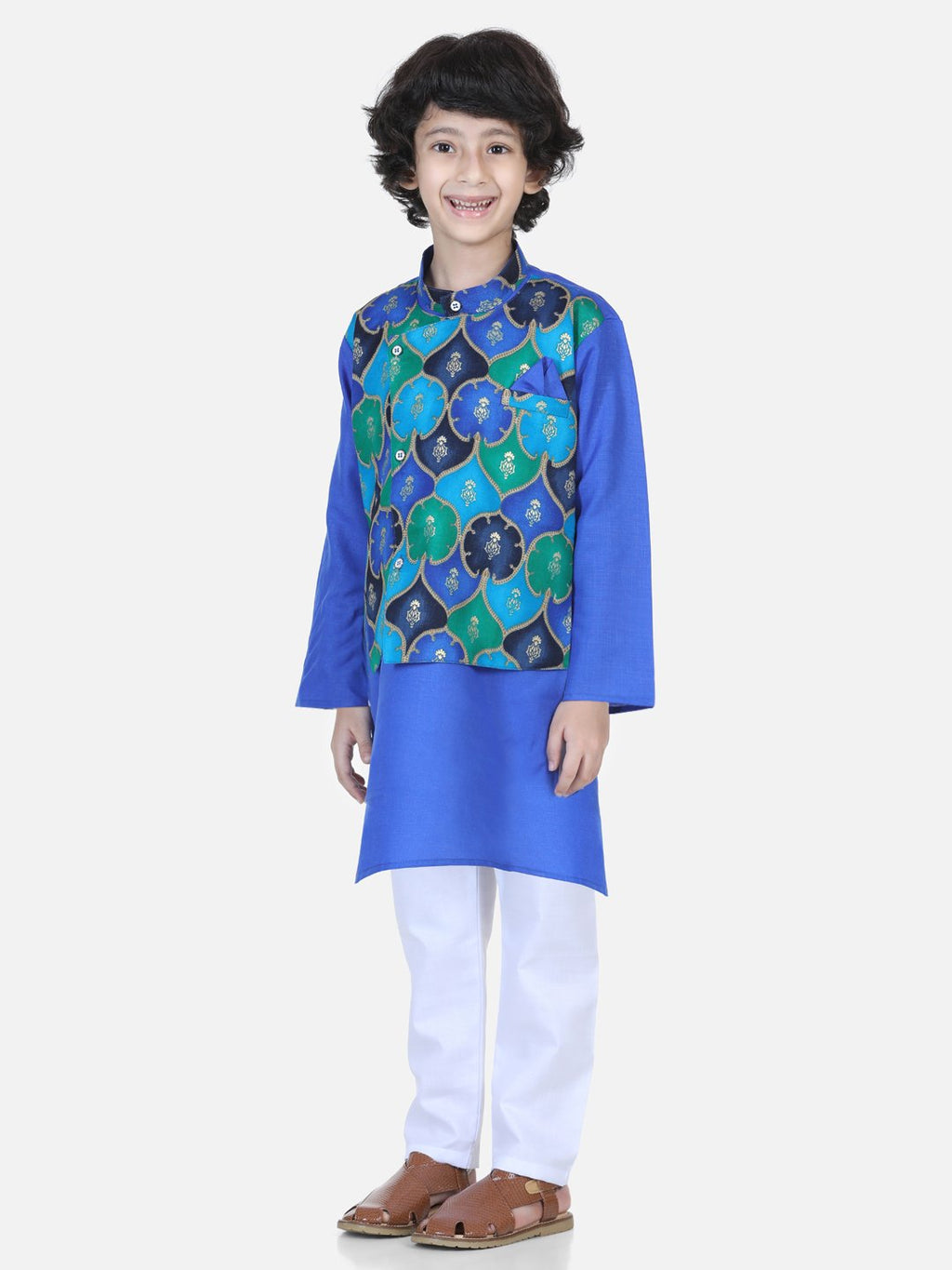 BownBee Attached Jacket Kurta Pajama for Boys- Blue