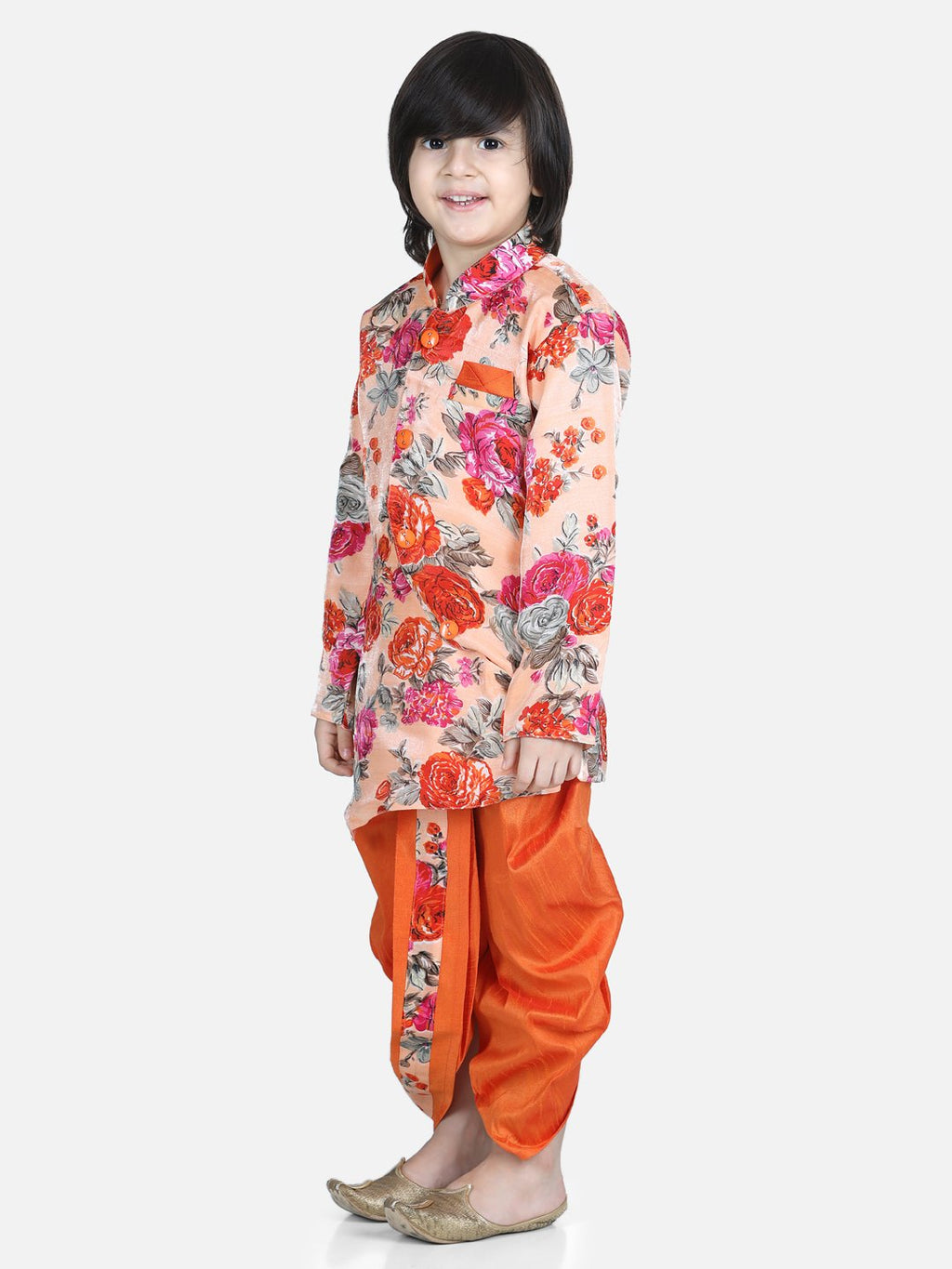 Front Open Embroidered Kurta Dhoti for Boys-Orange
