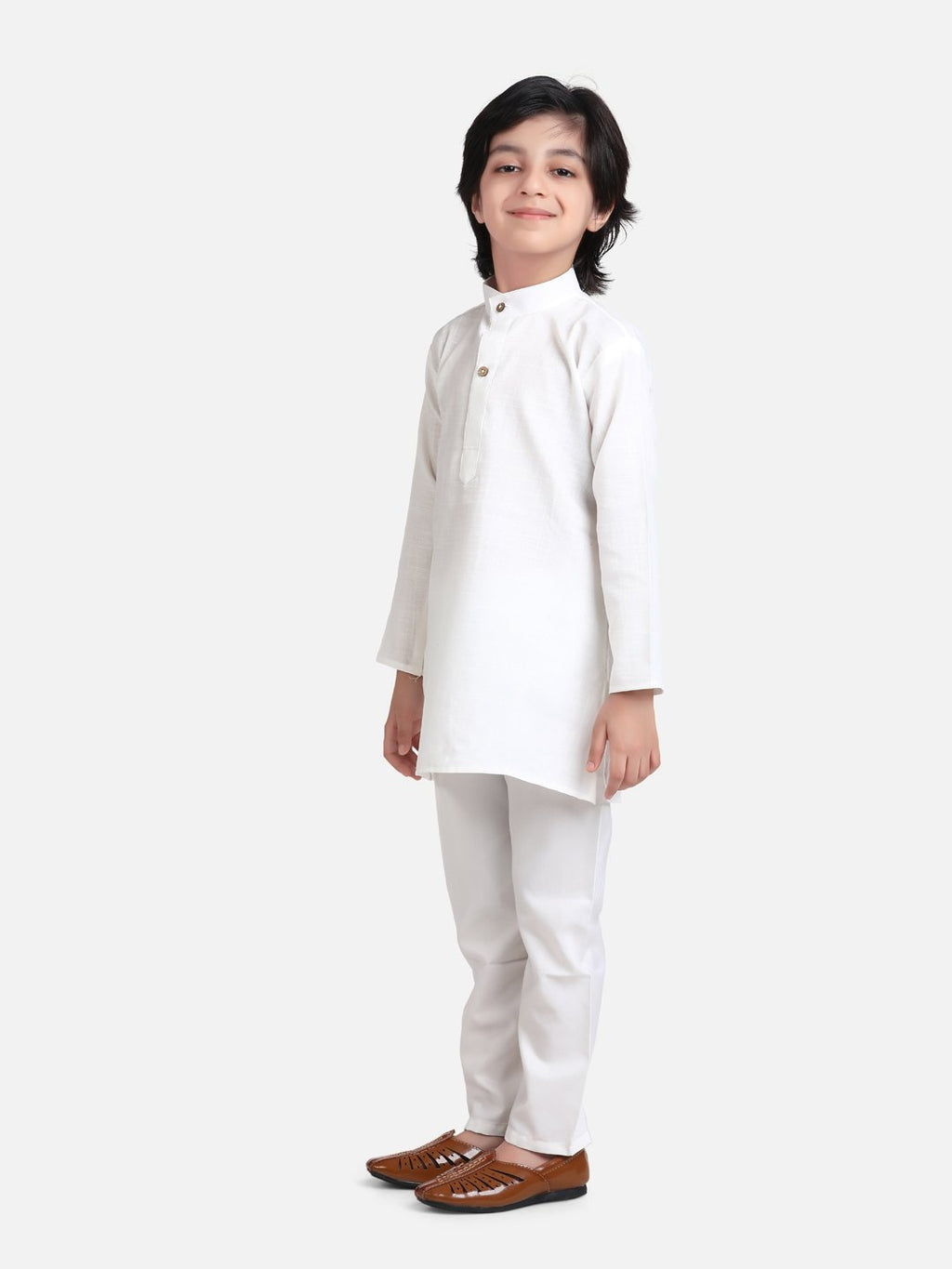 Front Open Embroidered Kurta Dhoti for Boys-White