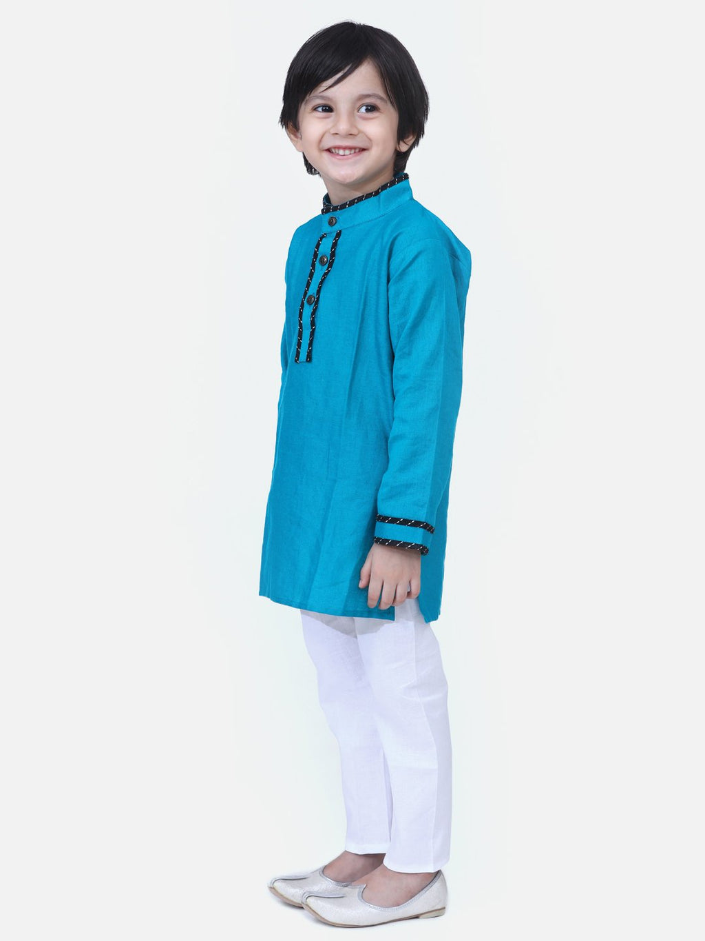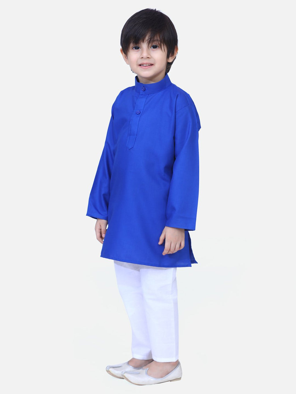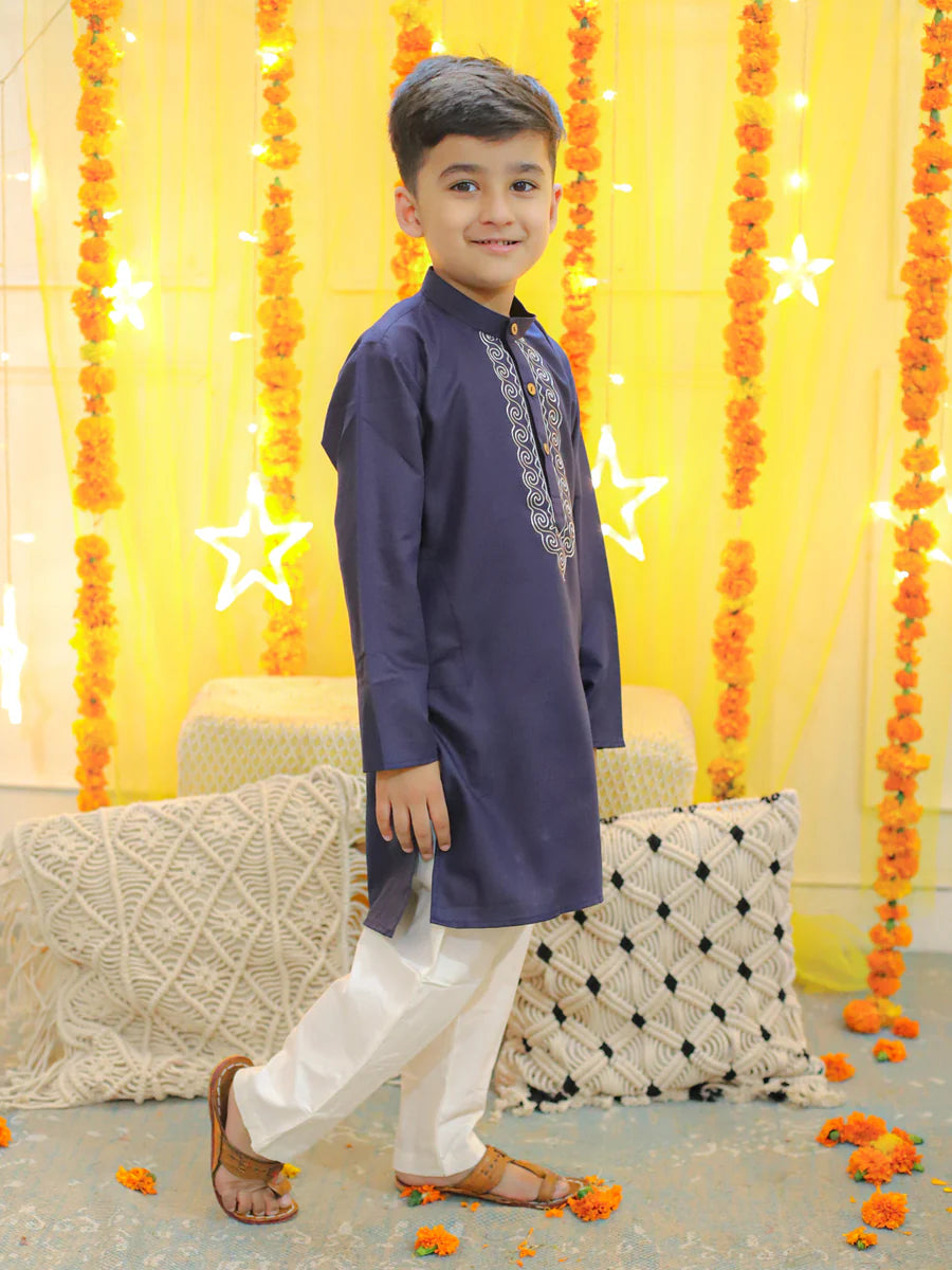 BownBee Embroidery Cotton Full Sleeve Kurta Pajama for Boys - Blue