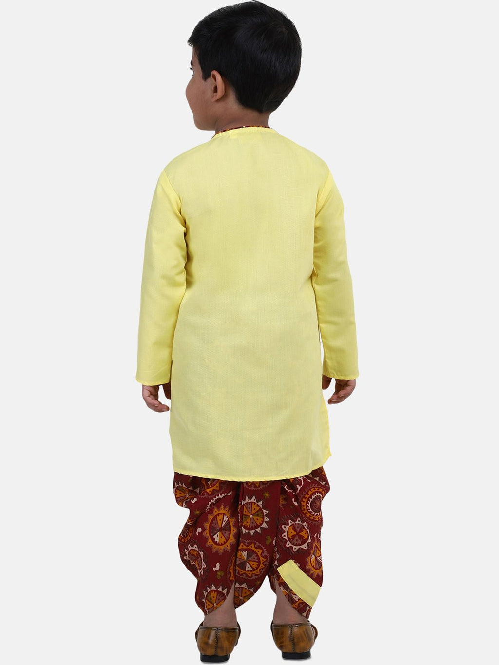 Full Sleeve Printed Dhoti Kurta For Boys-Yellow