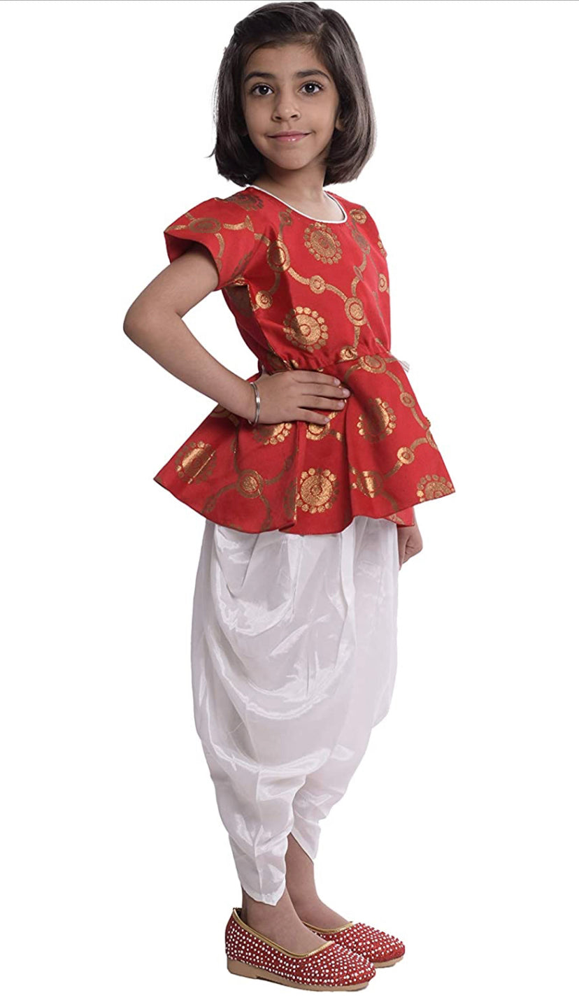 Ethnic Doll Jacquard Dhoti Peplum Top- Red and White