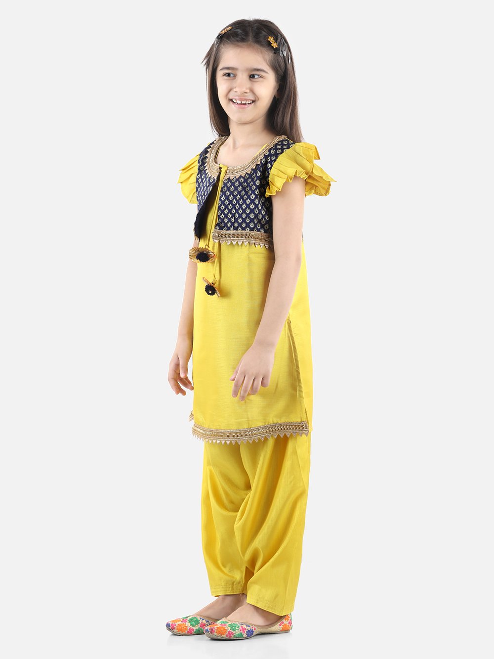 Jacquard Jacket Silk Kurti Salwar Suit for Girls- Yellow